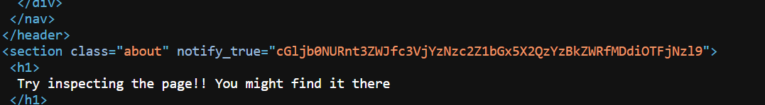 The Home and Contact pages didn’t have much But the The About page had something interesting an encoded string