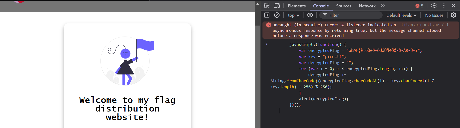 *Why search for the flag when I can make a bookmarklet to print it for me? Browse here , and find the flag!