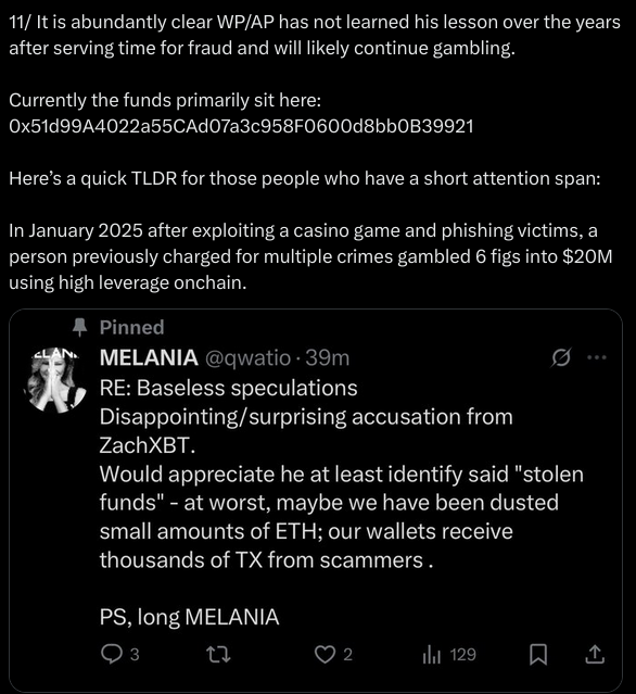 I have got the “X.com” thread for Zach’s investigation https://x.com/zachxbt/status/1902713021937426495